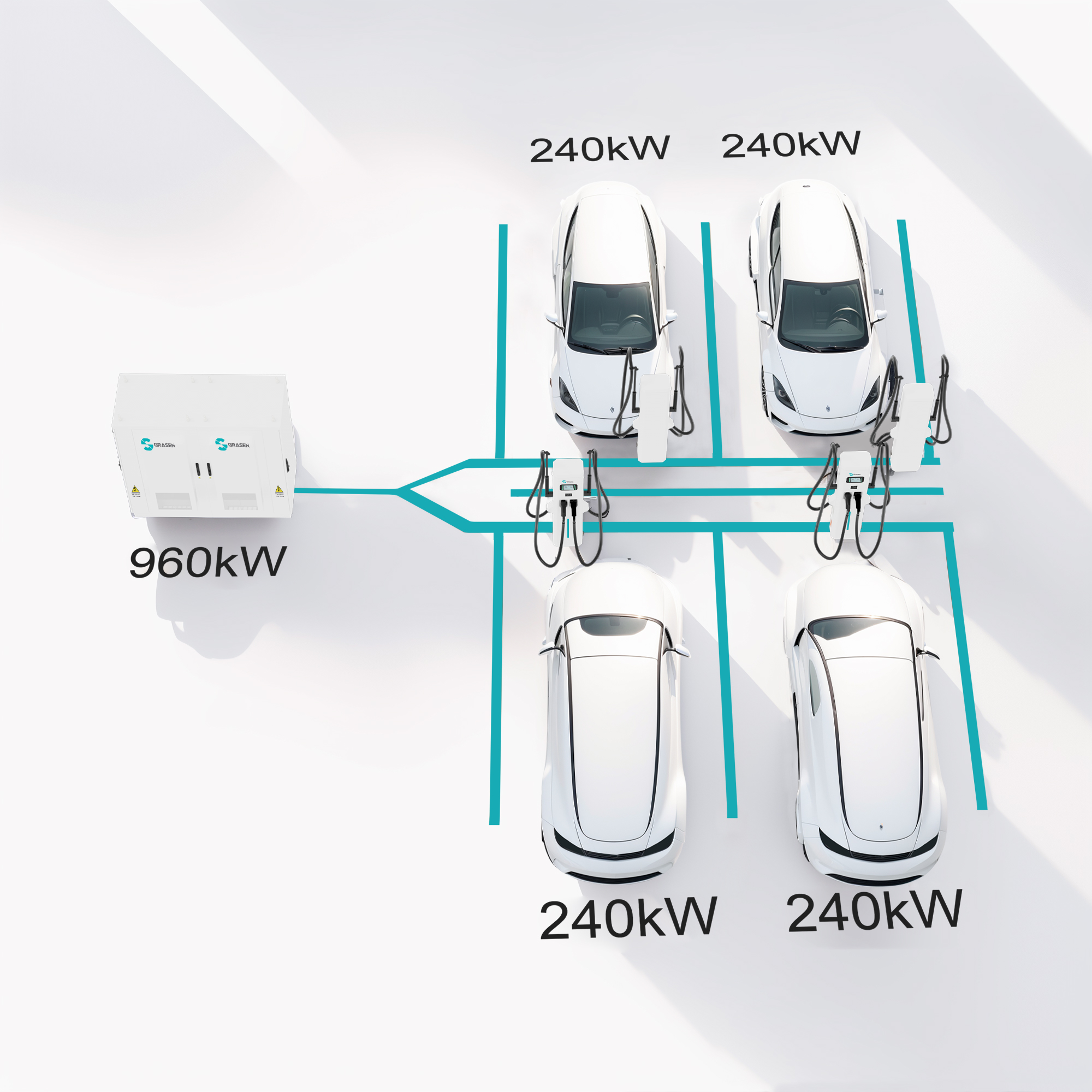 Supports 1–12 dispensers, up to 960 kW total output.