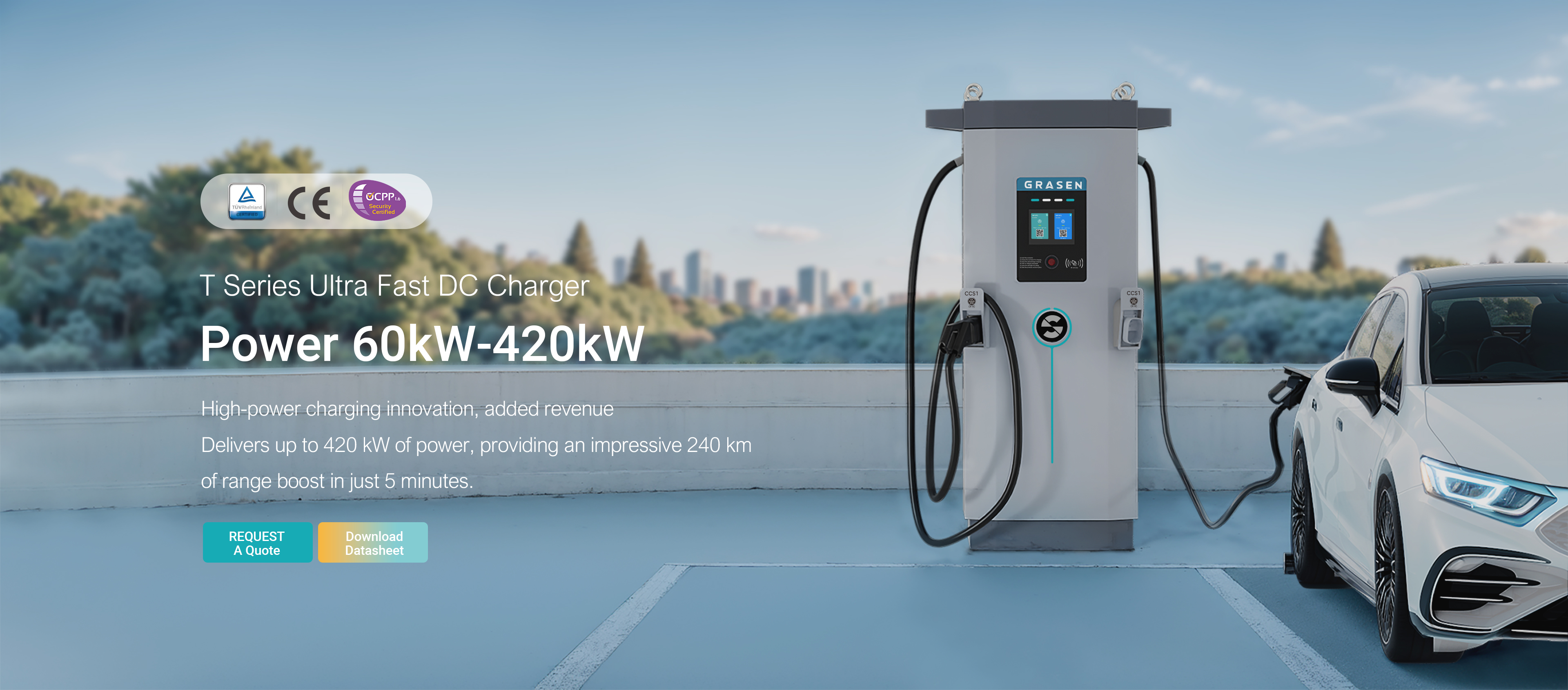 Power up to 420kW, delivering 240 km of range in just 5 minutes, works with all EVs